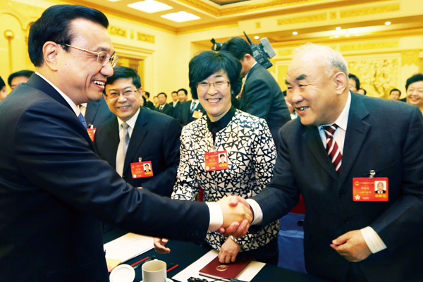 2014年3月6日,中共中央政治局常委、國務院總理李克強參加十二屆全國人大二次會議山東代表團的審議時與時風集團黨委書記、董事長劉義發親切握手。